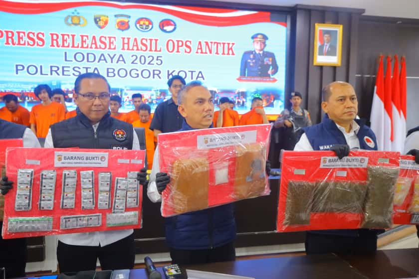 Dari operasi ini, petugas berhasil menyita barang bukti berupa 102,16 gram sabu, 2.003,13 gram ganja, 1.287,57 gram tembakau sintetis, 43.407 butir obat keras tertentu, serta 575 butir psikotropika. Pengungkapan kasus dilakukan di enam wilayah Kota Bogor, meliputi Bogor Utara, Bogor Timur, Bogor Selatan, Bogor Tengah, Bogor Barat, dan Tanah Sareal.